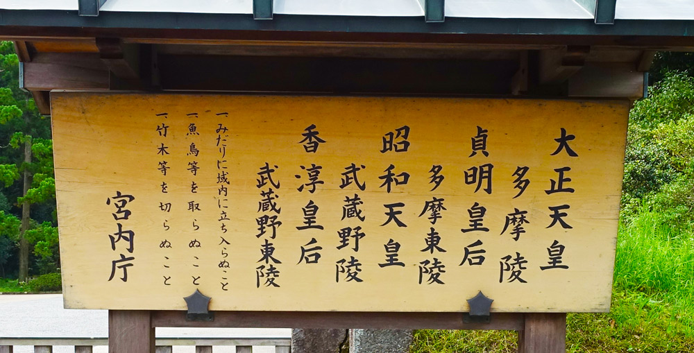大正天皇、昭和天皇、皇后と書かれた宮内庁による看板