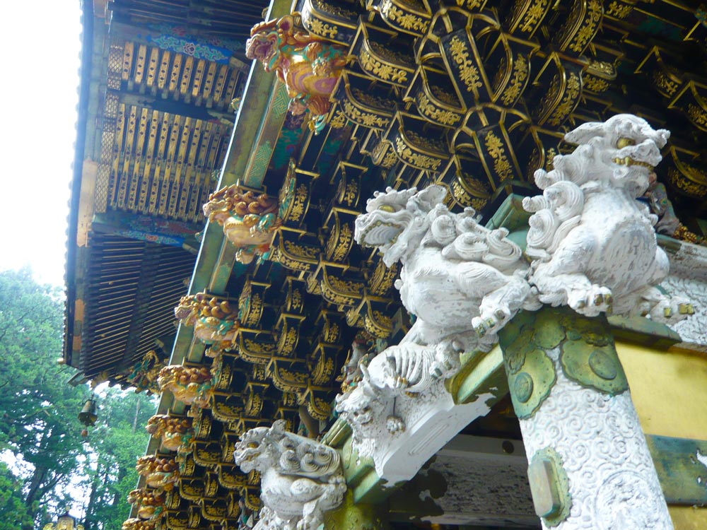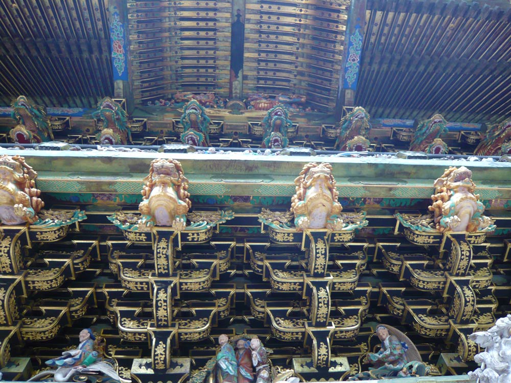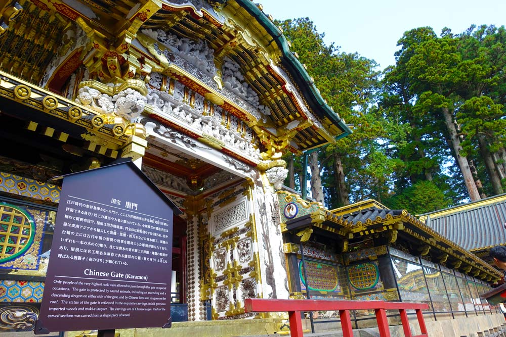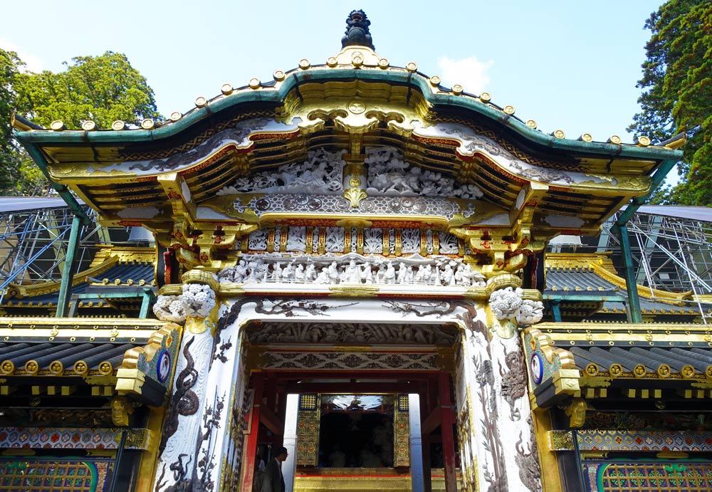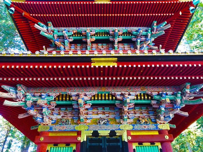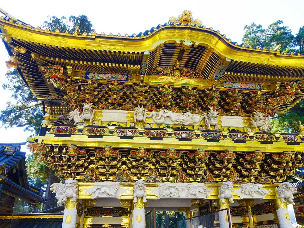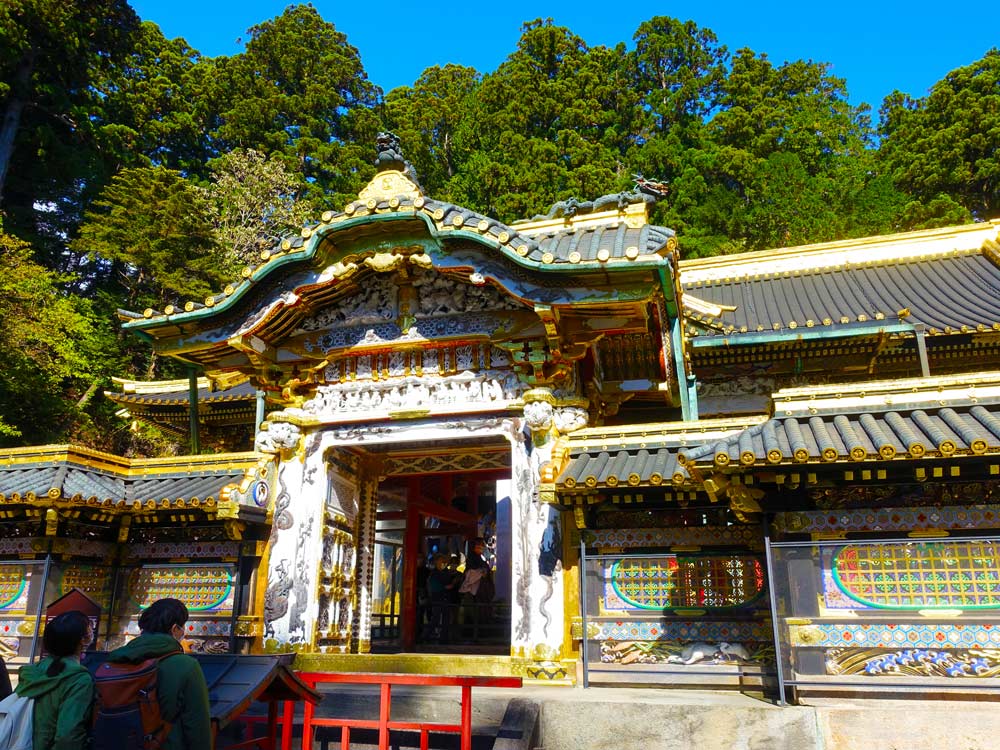陽明門の裏側も贅を尽くした豪華絢爛な細工に目を見張る。