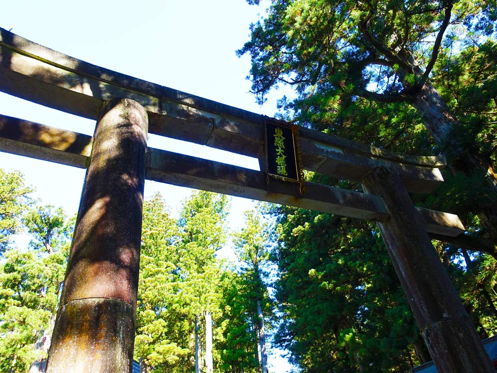 鳥居の額には「東照大権現」の文字が。これは徳川家康公が亡くなった後に、「後水尾天皇」から贈られた勅諡号である。
