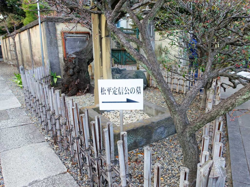 本堂左手に「松平定信公」のお墓がり、案内看板も設置されている。