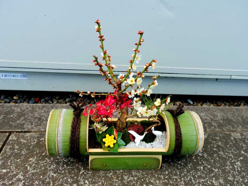 プレハブの前に作られた新春のお花が可愛らしかったのでパチリ