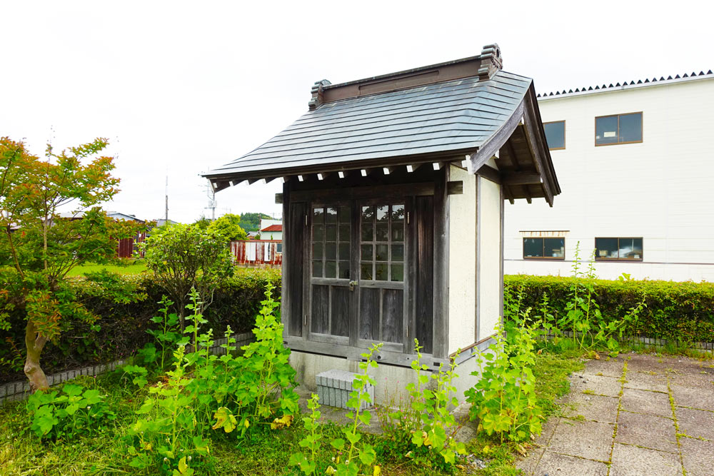 白地に赤い文字で「本」と書かれた旗があるが、その前は小さなお堂が建っていた。