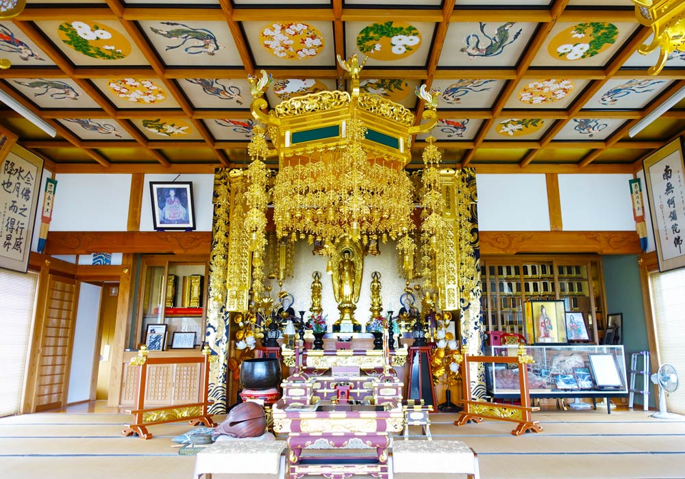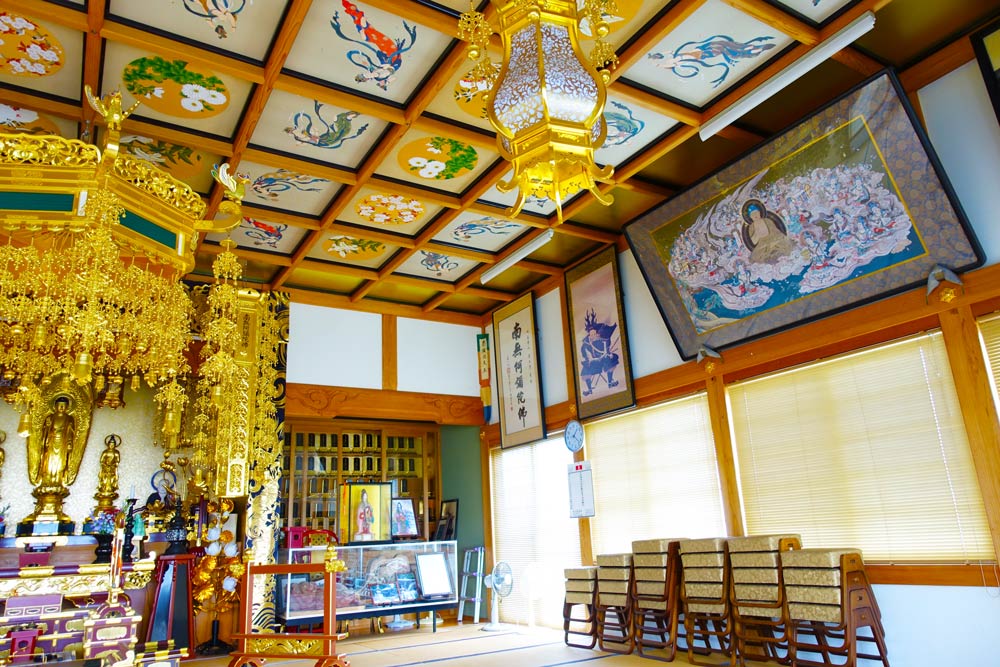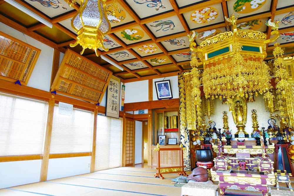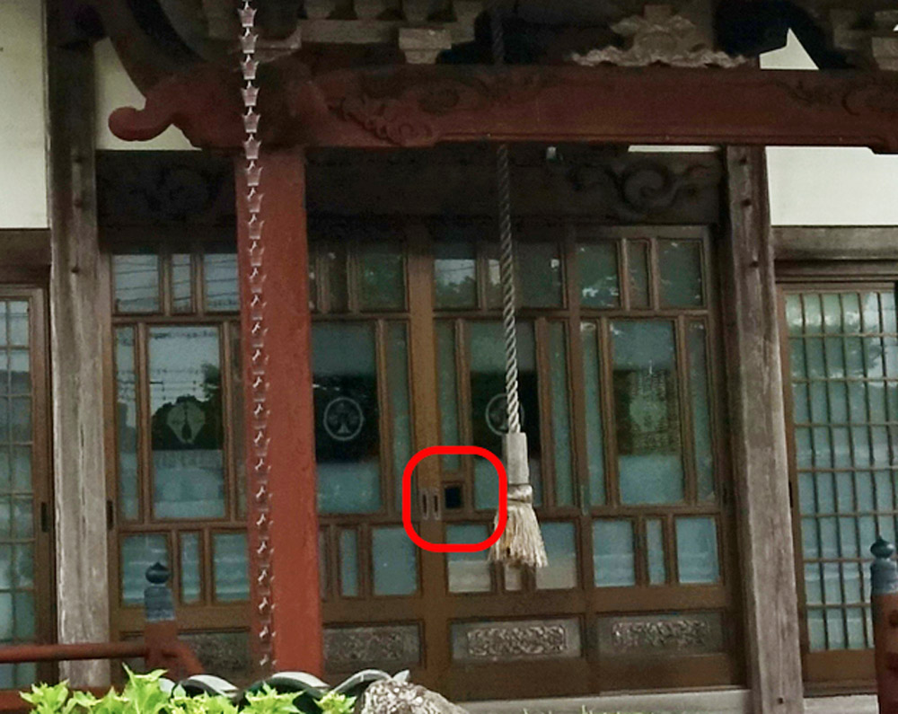 本堂の扉には小さな窓があり、そこから中を覗くことができた。早速カメラを突っ込んで内部をパチリ。