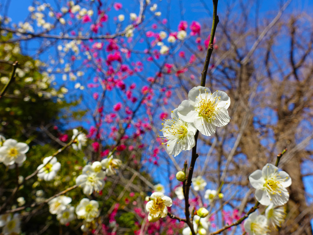 参拝日はまだ2月上旬であったが、紅白の梅が咲き始めていた。