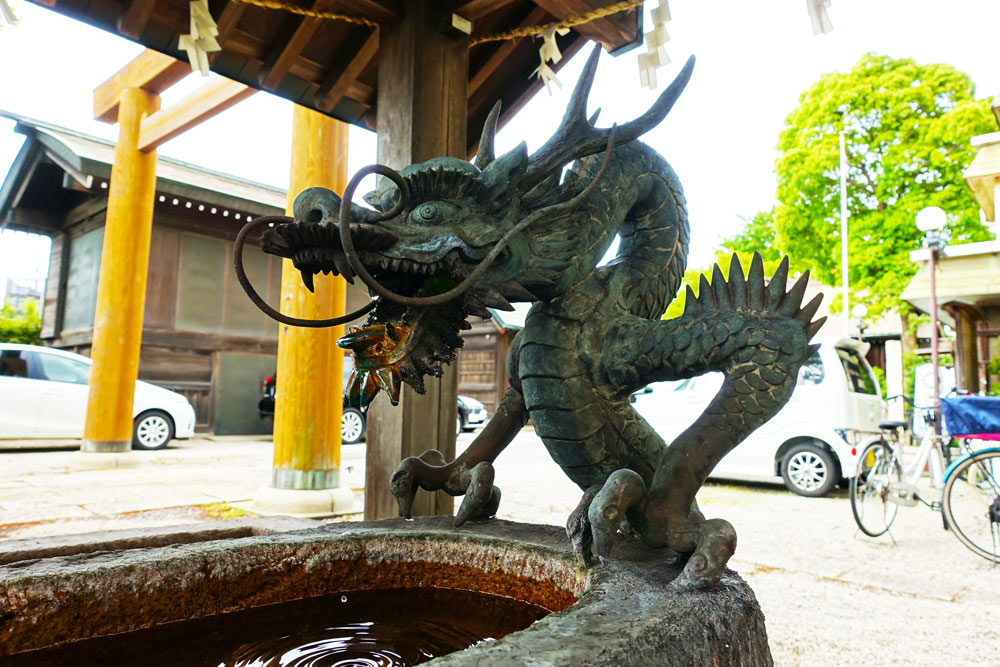 鳥居をくぐると、右手に立派な屋根の手水舎がある。水が出る部分になっている龍の銅像がカッコいい!
