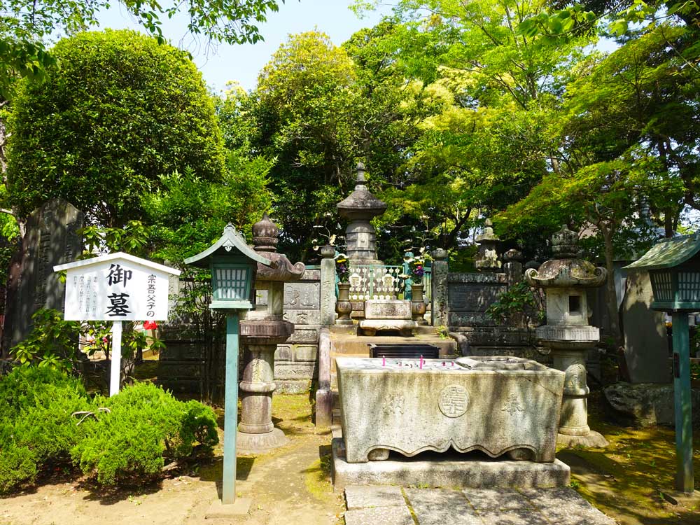 江戸時代初期、領主の悪政を正すために一人江戸へ赴き、徳川将軍に直訴。結果、農民を救ったとされる「佐倉宗吾(惣五郎)」とその家族の墓。