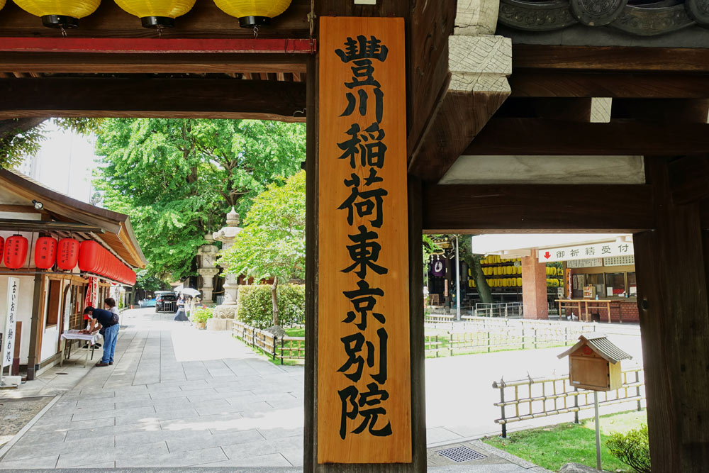 豊川稲荷東京別院の看板が掲げられている。
