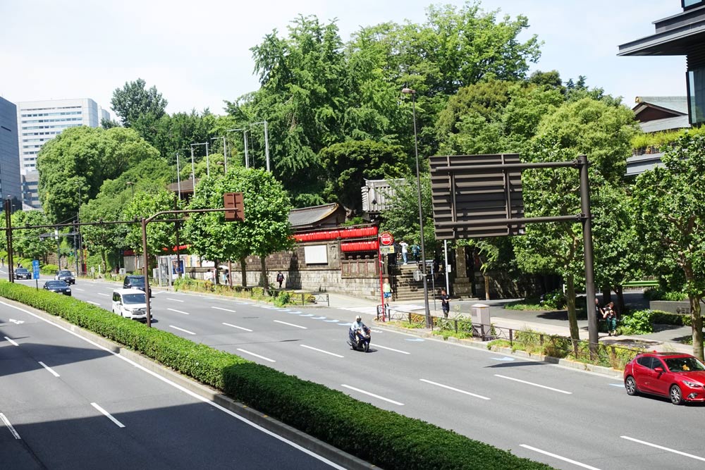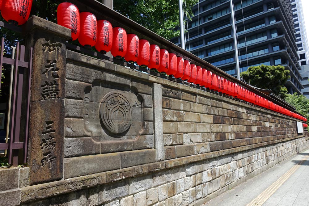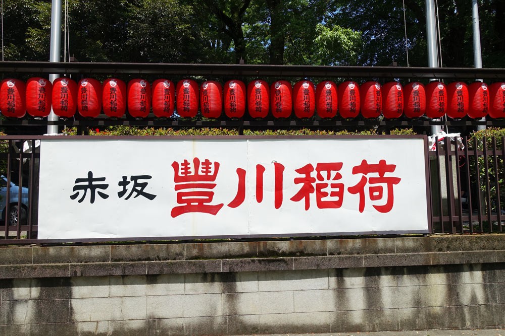 豊川稲荷東京別院は、赤坂見附から青山通り沿いに望むことができる。新緑に囲まれ、朱色の提灯が連なる様子は、ここが東京の一等地であることを忘れさせてくれる。