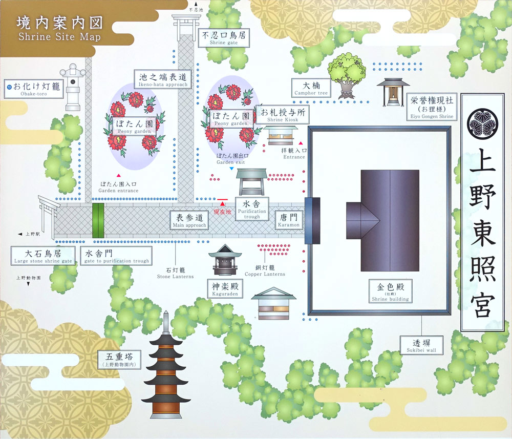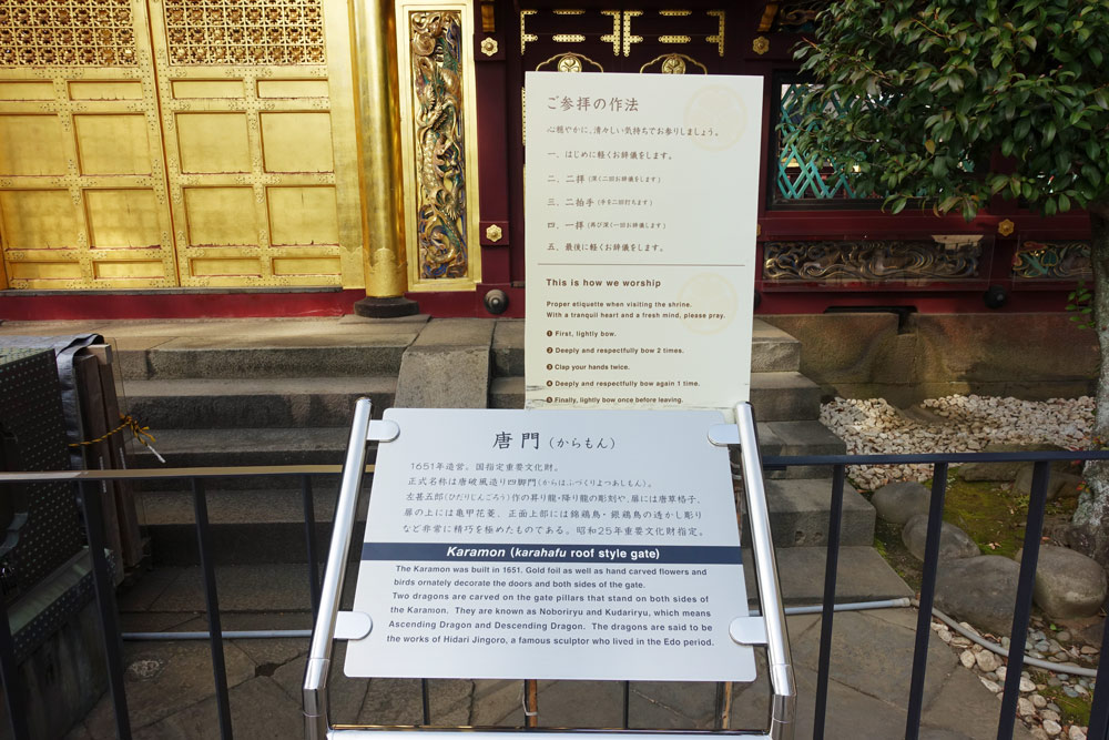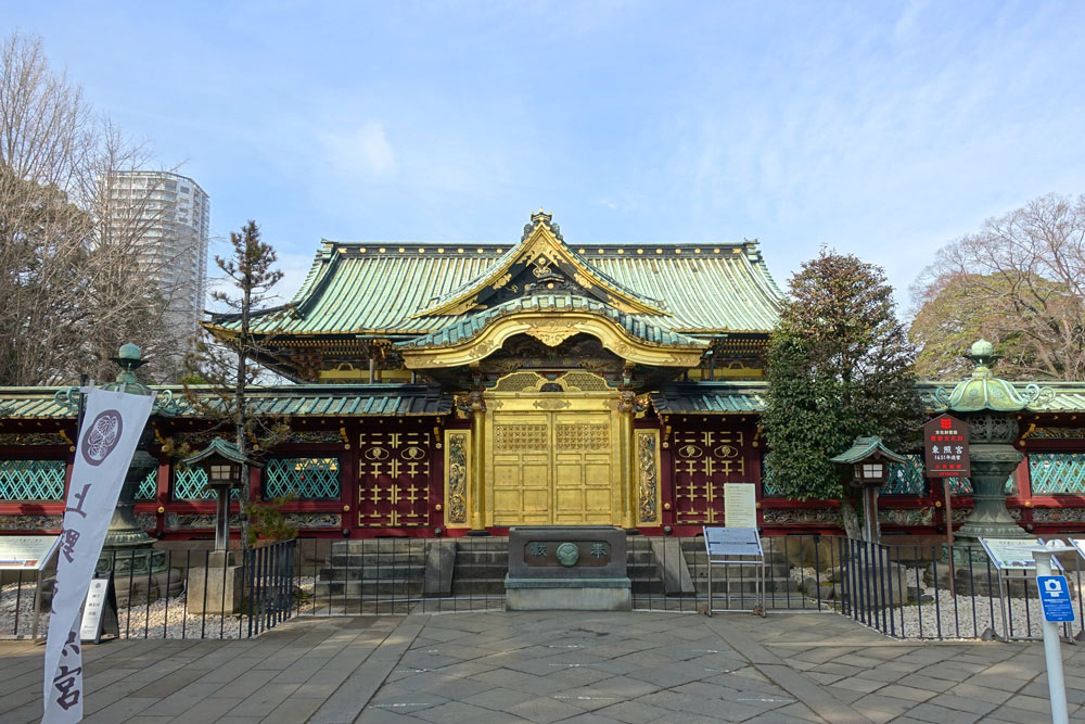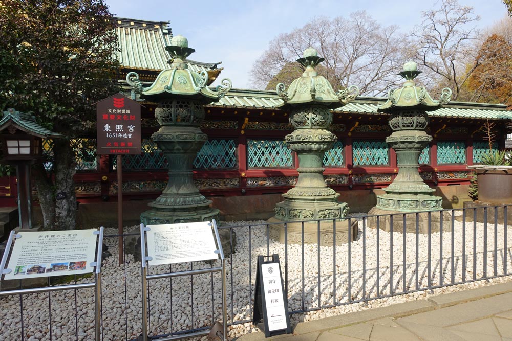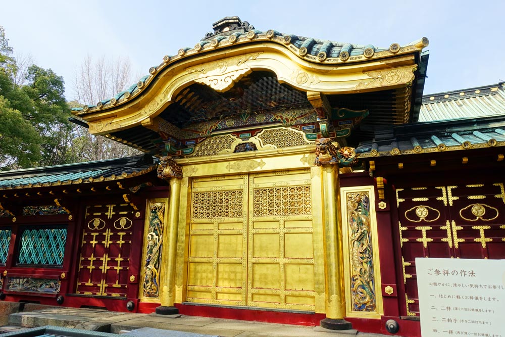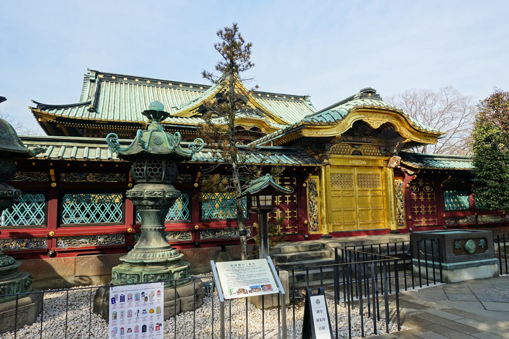 あの徳川家康公を祀る神社。それが東照宮。ここは江戸の人々にもお参りに行けるよう、日光東照宮に準じた豪華な社殿が立てられた。戊辰戦争にも、関東大震災にも、東京大空襲にも難を逃れ、江戸初期の姿のまま残っている貴重な社殿である。