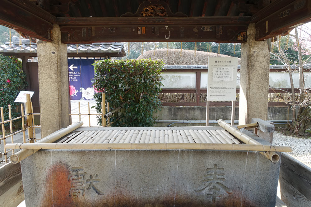 この門は、昔の手水舎の屋根を移築して門として使っているんだって!