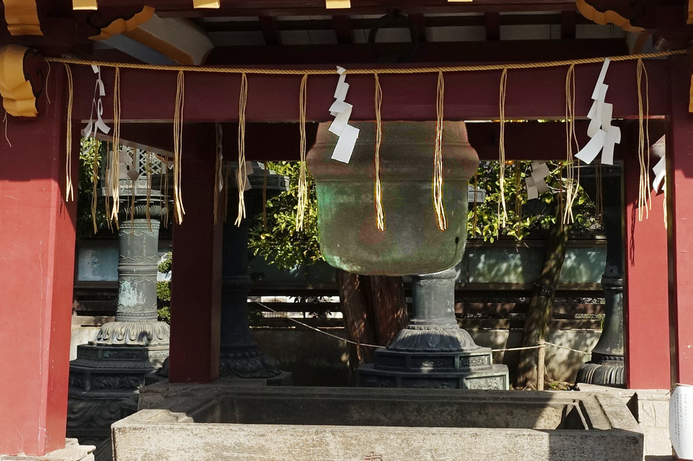 拡大した鈴はこんな感じ。手水鉢と比べるとかなりの大きさであることが分かる。