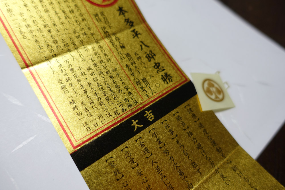 大吉~!!  しかも武将は四天王の本多忠勝!良かった。