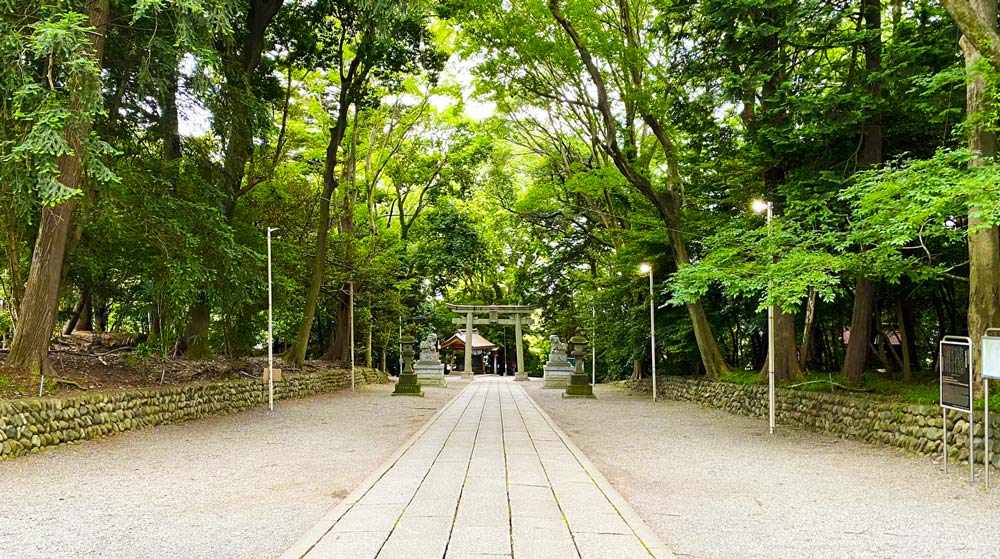 参拝時期が新緑の季節だったこともあり、緑に囲まれた参道が美しい。