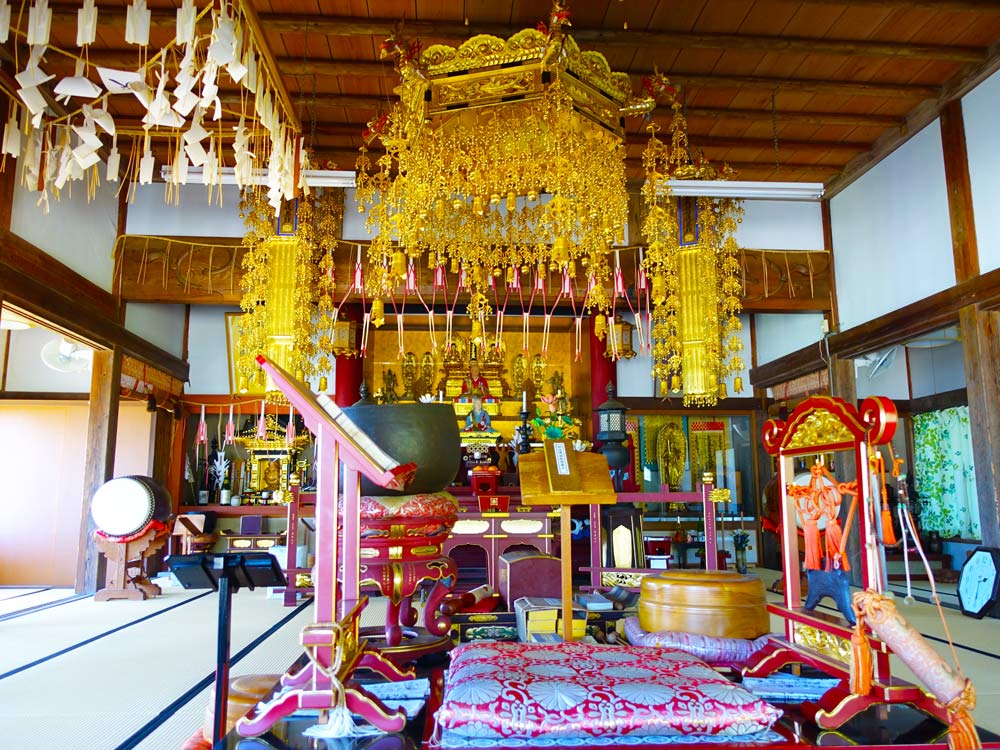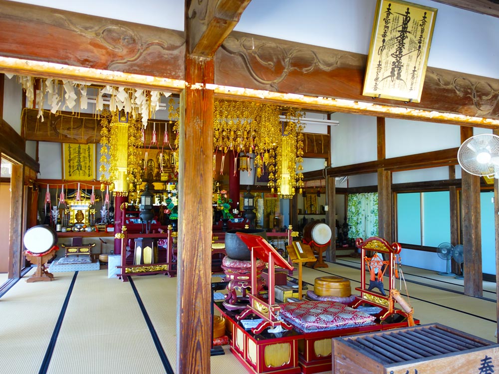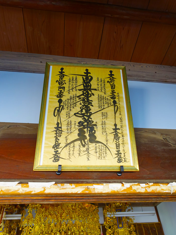 本堂内には「南無妙法蓮華経」の御主題が掲げられている。美しい。